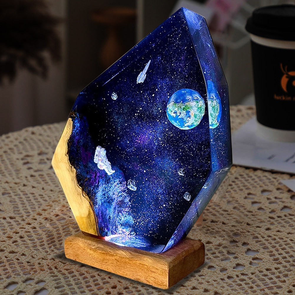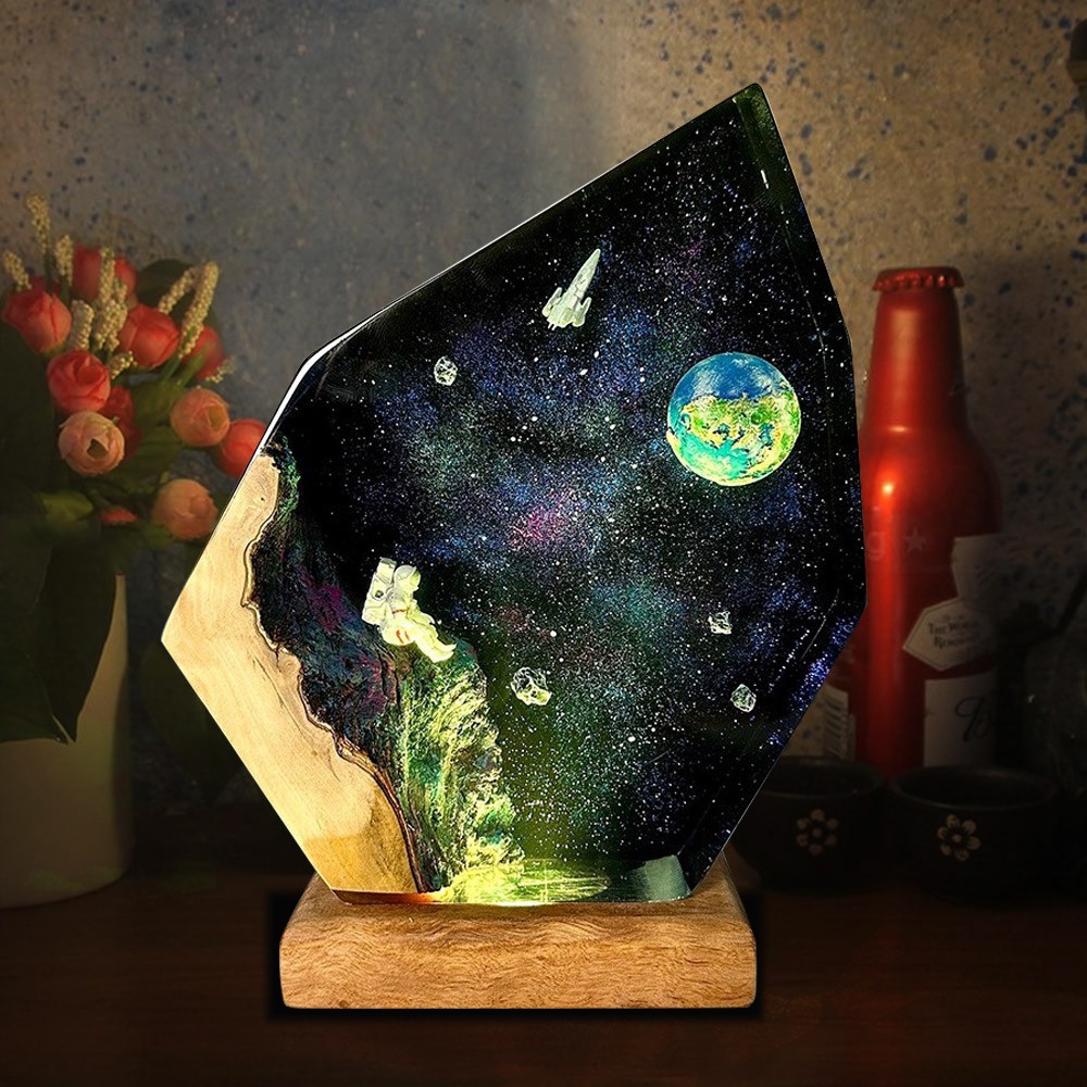 Astronaut Resin Wood Art Lamp Interstellar Night Light Resin Wood Lamp Birthday Gift Christmas Gift Ideas
