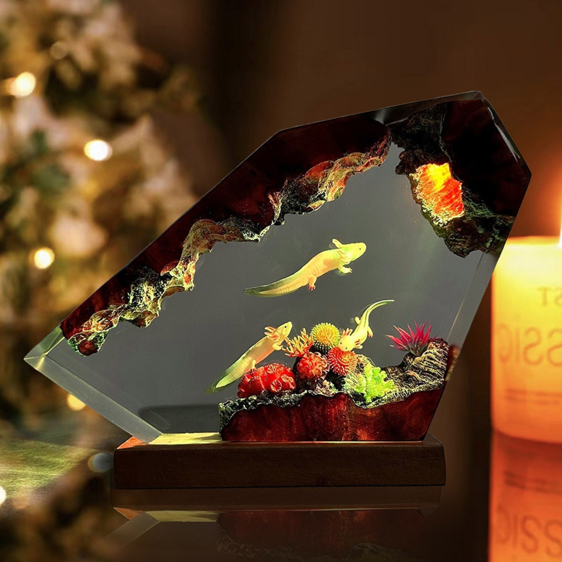 Axolotl or Mexican Salamander Resin Wood Lamp Christmas Gift Ideas Birthday Gifts