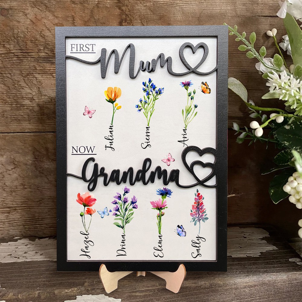 Personalised First Mum Now Grandma Birth Month Flowers Frame Family Sign Gift For Mum Grandma Mother's Day Gift Ideas