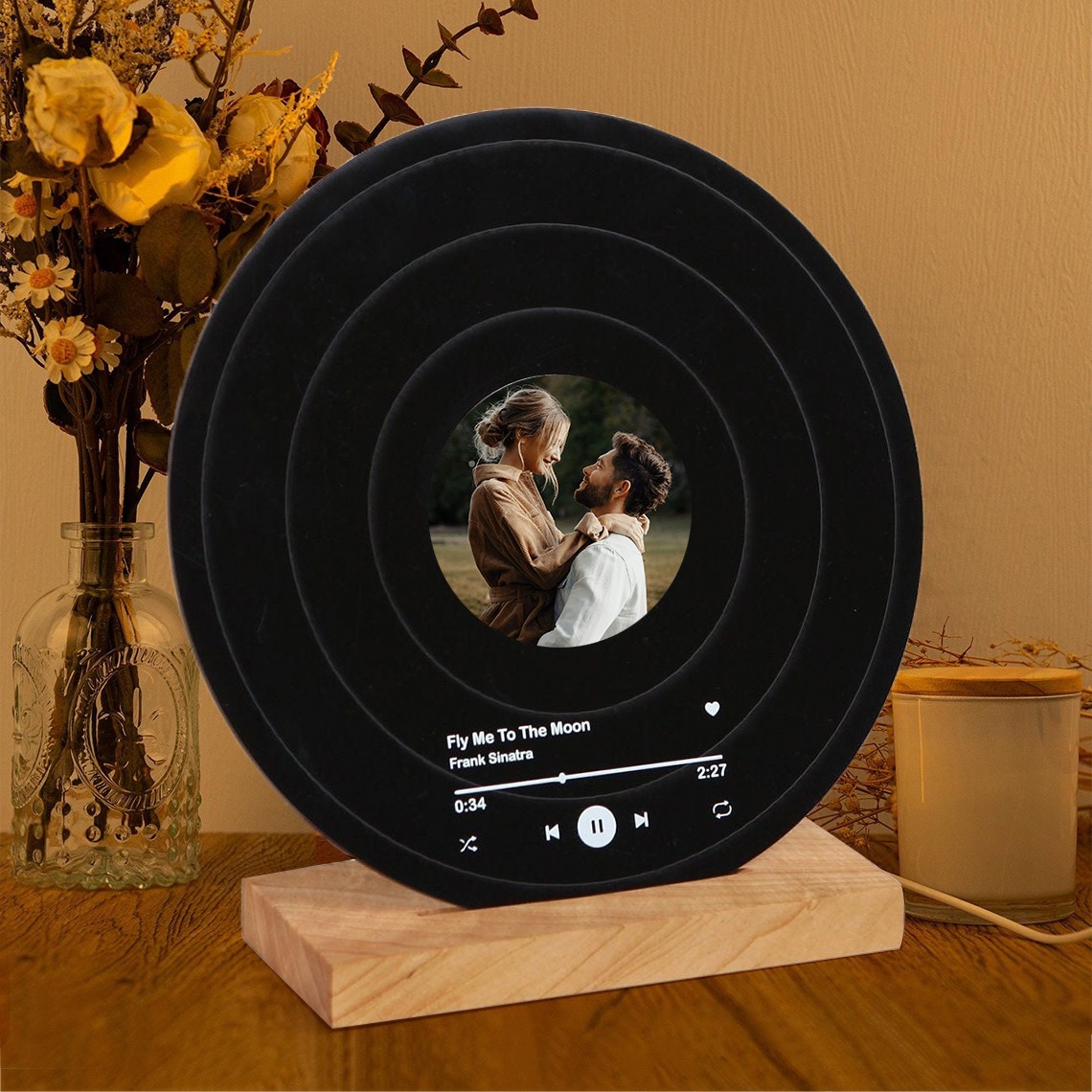 Couple Song Plaque Personalised Vinyl Record with Photo Wedding Anniversary Gift Ideas Valentine's Day Gifts for Her