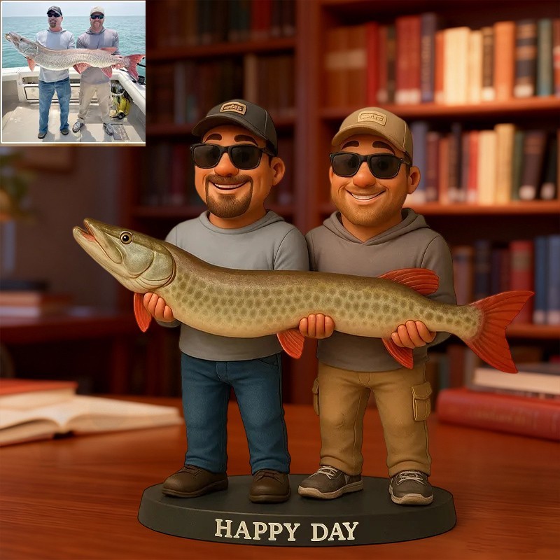 Custom 2D Fishing Photo Portrait Cartoon Style Figurine for Him Unique Desk Decor Gifts for Fisherman