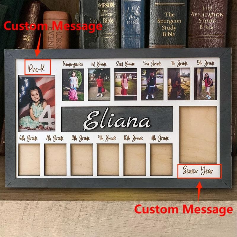 Custom 3D Pre K-12 School Years Picture Frame Personalised Grade Photo Display Frame with Raised Lettering Rustic Gift For Kids