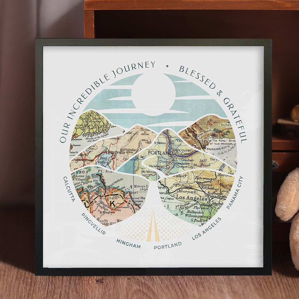 Custom Adventure Travel Map Art Print for Couples Wedding Anniversary Gift for Wife Husband