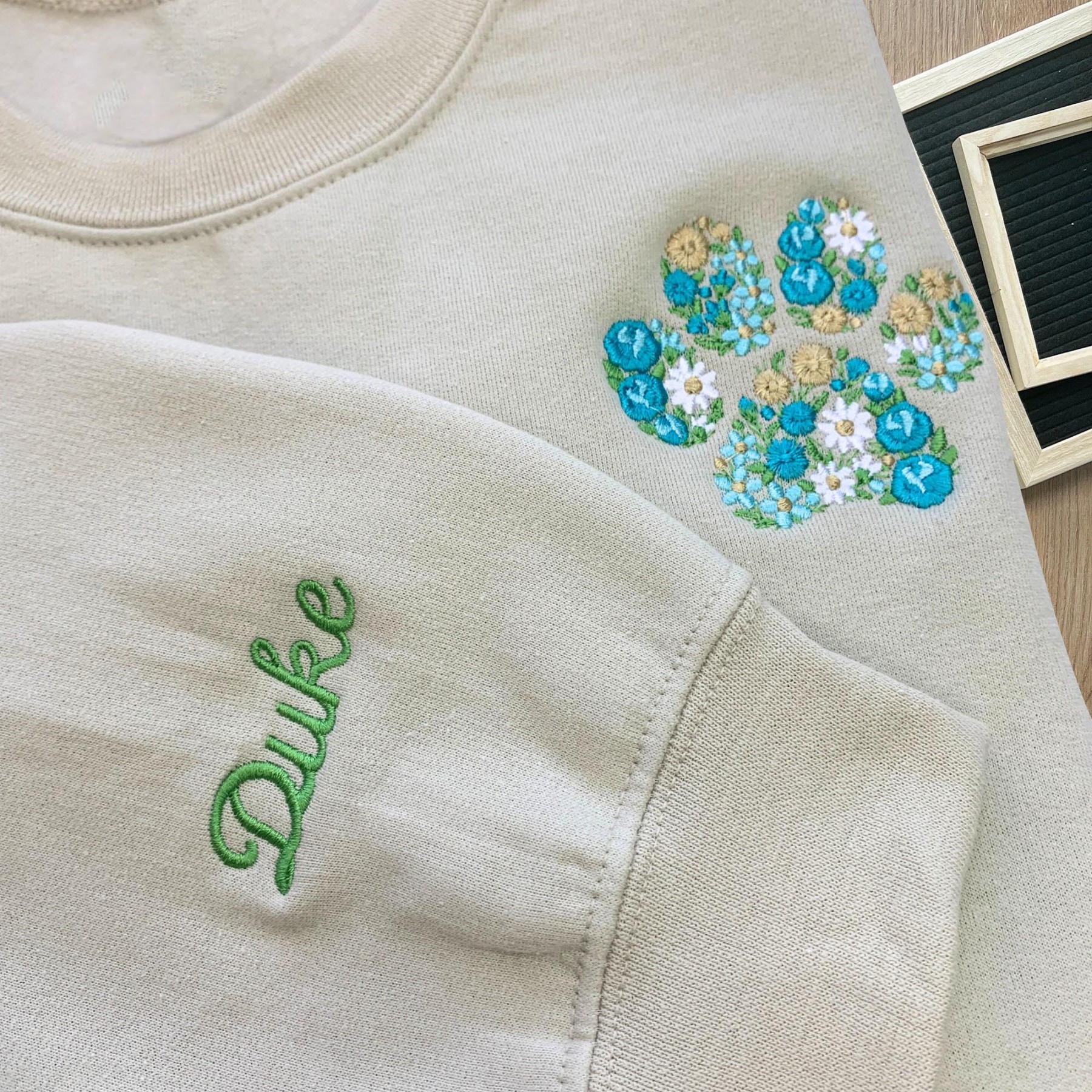 Custom Art Floral Embroidered Pet Paw Sweatshirt Hoodie Unique Memorial Gifts For Pet Lover Christmas Gift Ideas