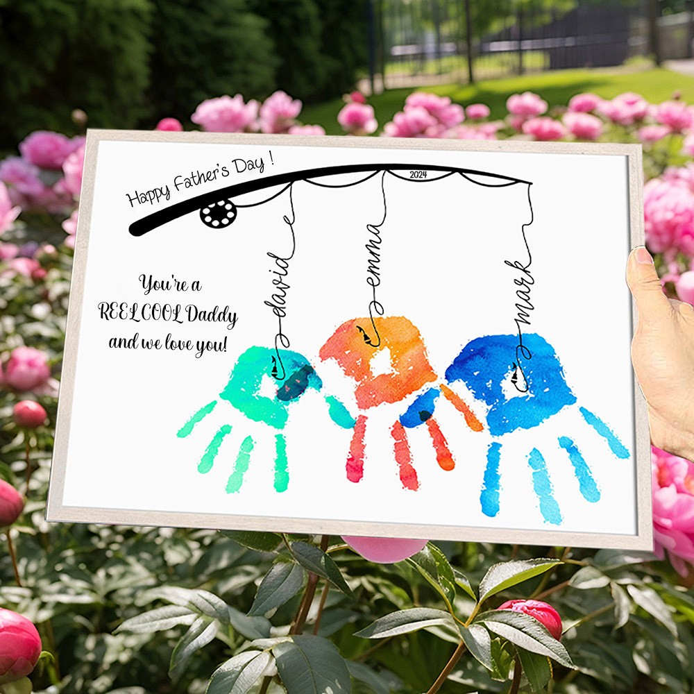 Custom Art Print Fishing Handprint Frame With Kids Names Unique Gift For Dad Father's Day GIft Ideas