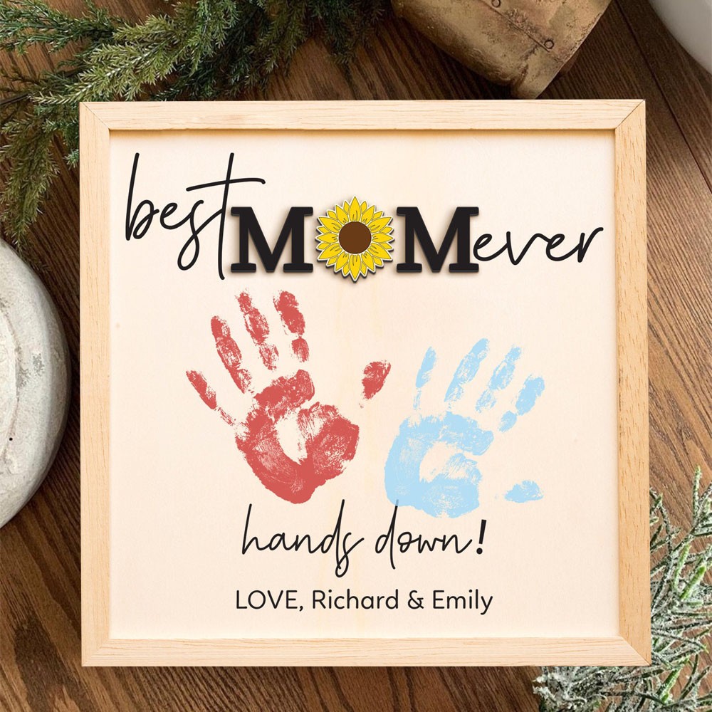 Custom Best Mum Ever Hands Down DIY Handprint Wooden Frame With Sunflower Unique Gifts For Mum