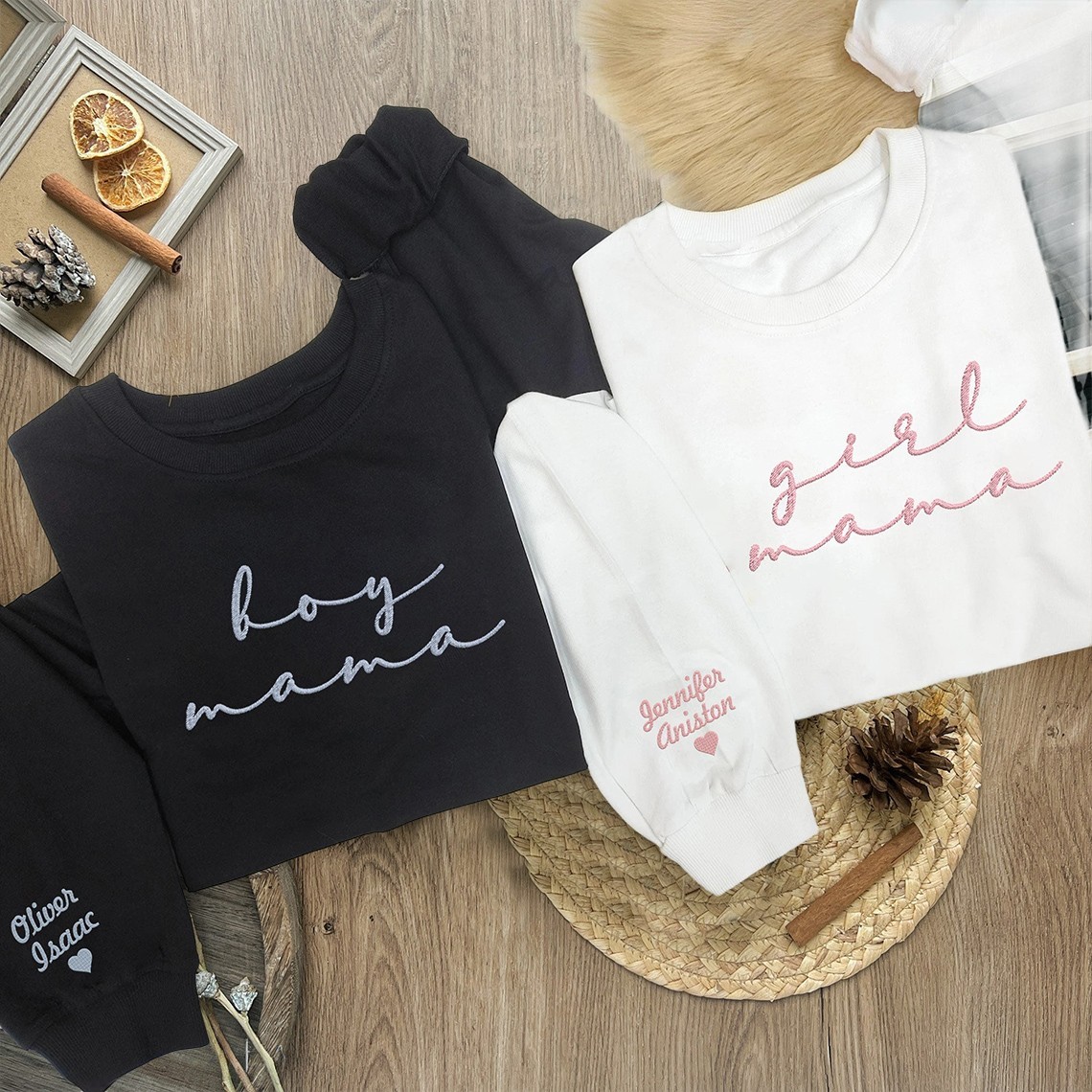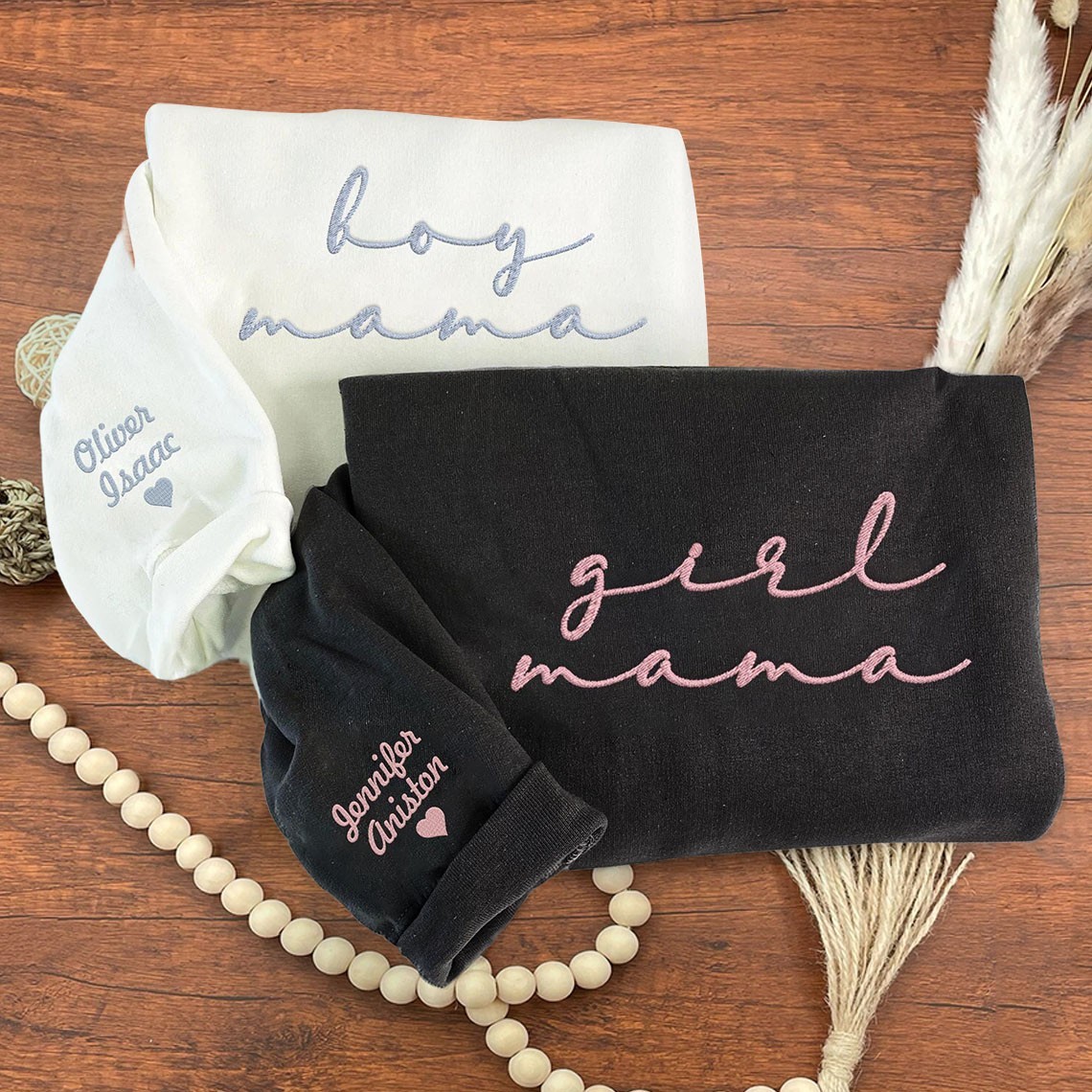 Custom Boy Mama Embroidered Sweatshirt With Kids Names Mum Of Boys Hoodie Gifts for Mum New Mum Gift Mother's Day Gift