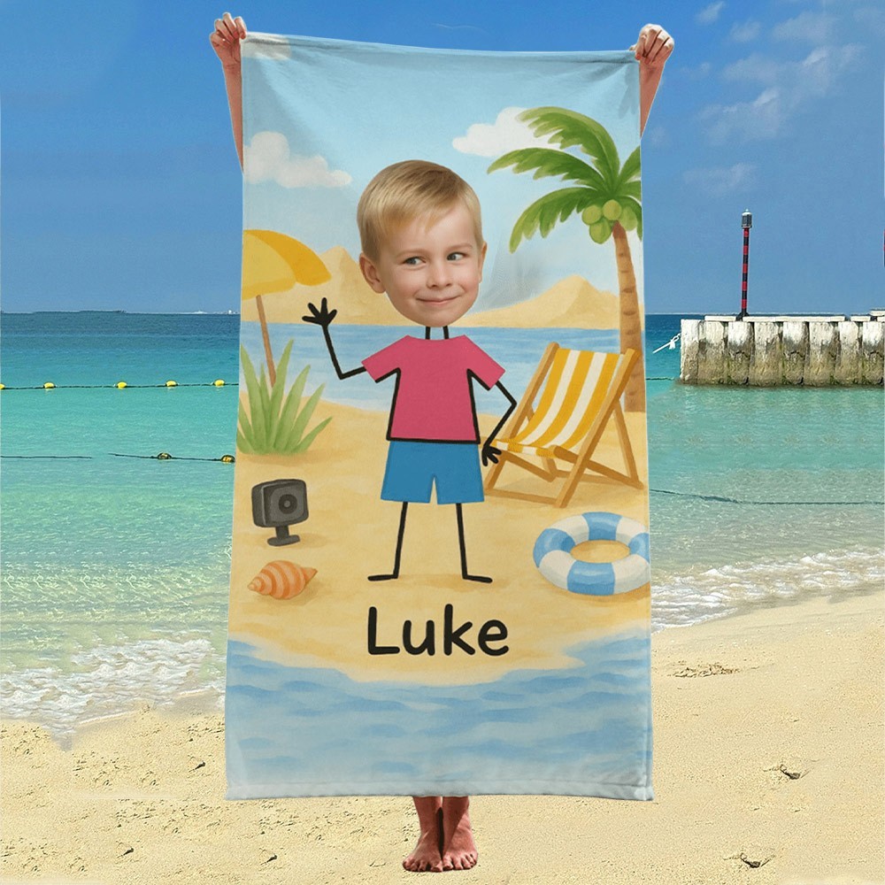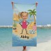 Custom Cartoon Girl or Boy Beach Towel with Photo and Name Summer Towel for Kids Funny Vacation Gifts for Girls Boys