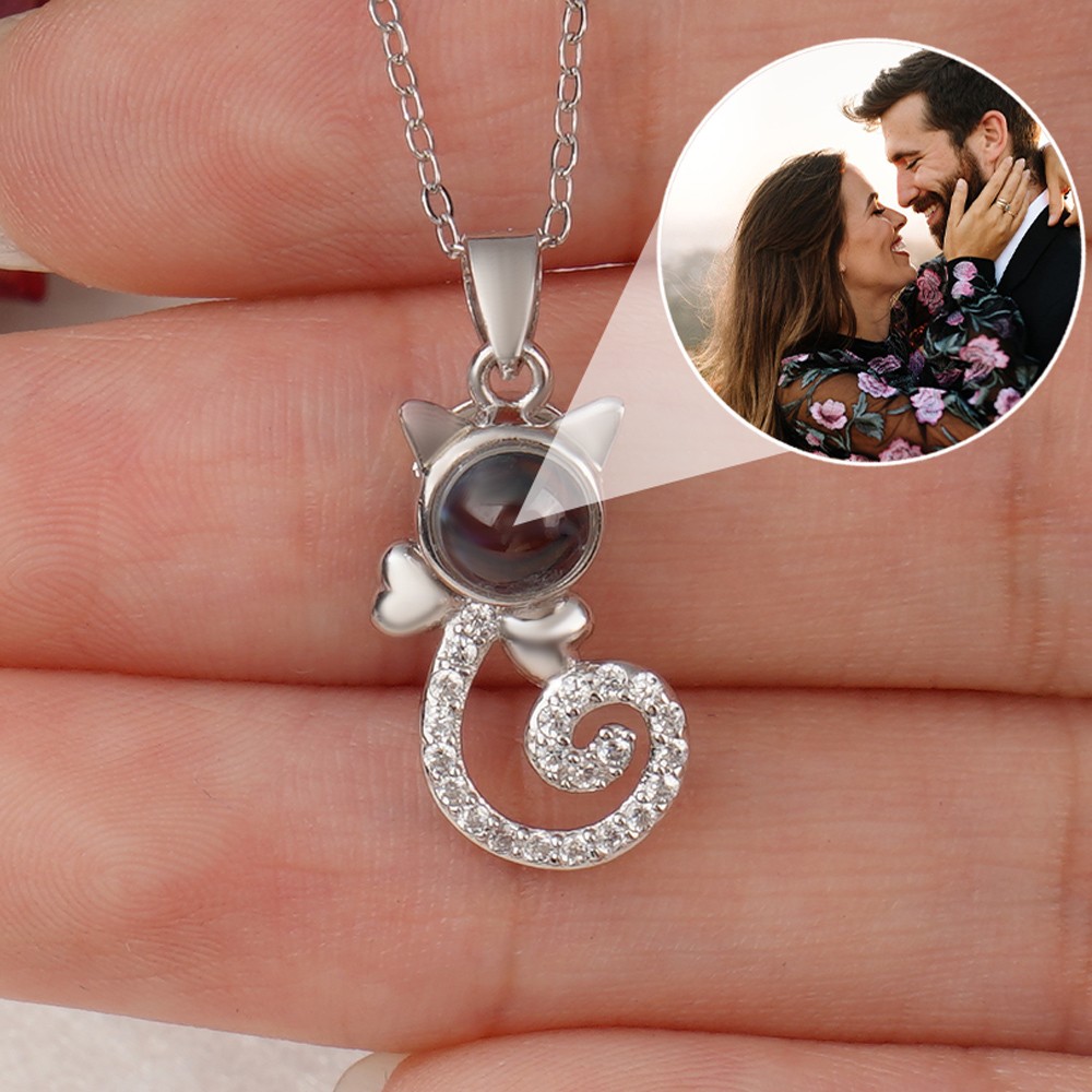 Custom Cat Shaped Photo Projection Pendant Necklace Fashion Cartoon Gift For Her Gift For Couple