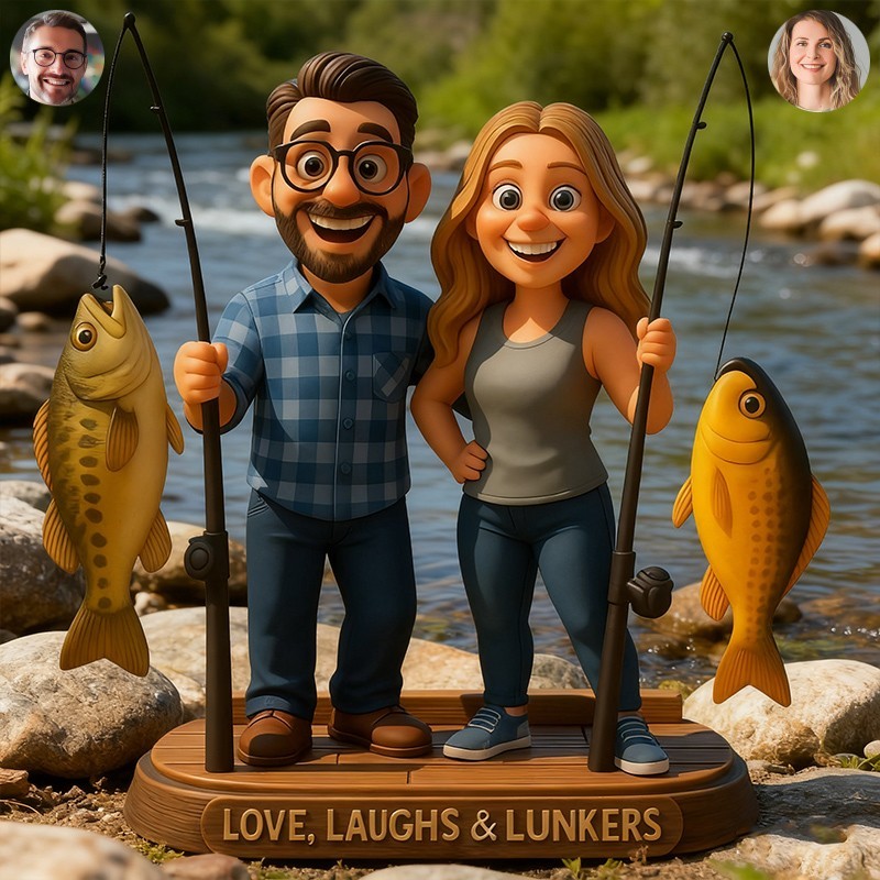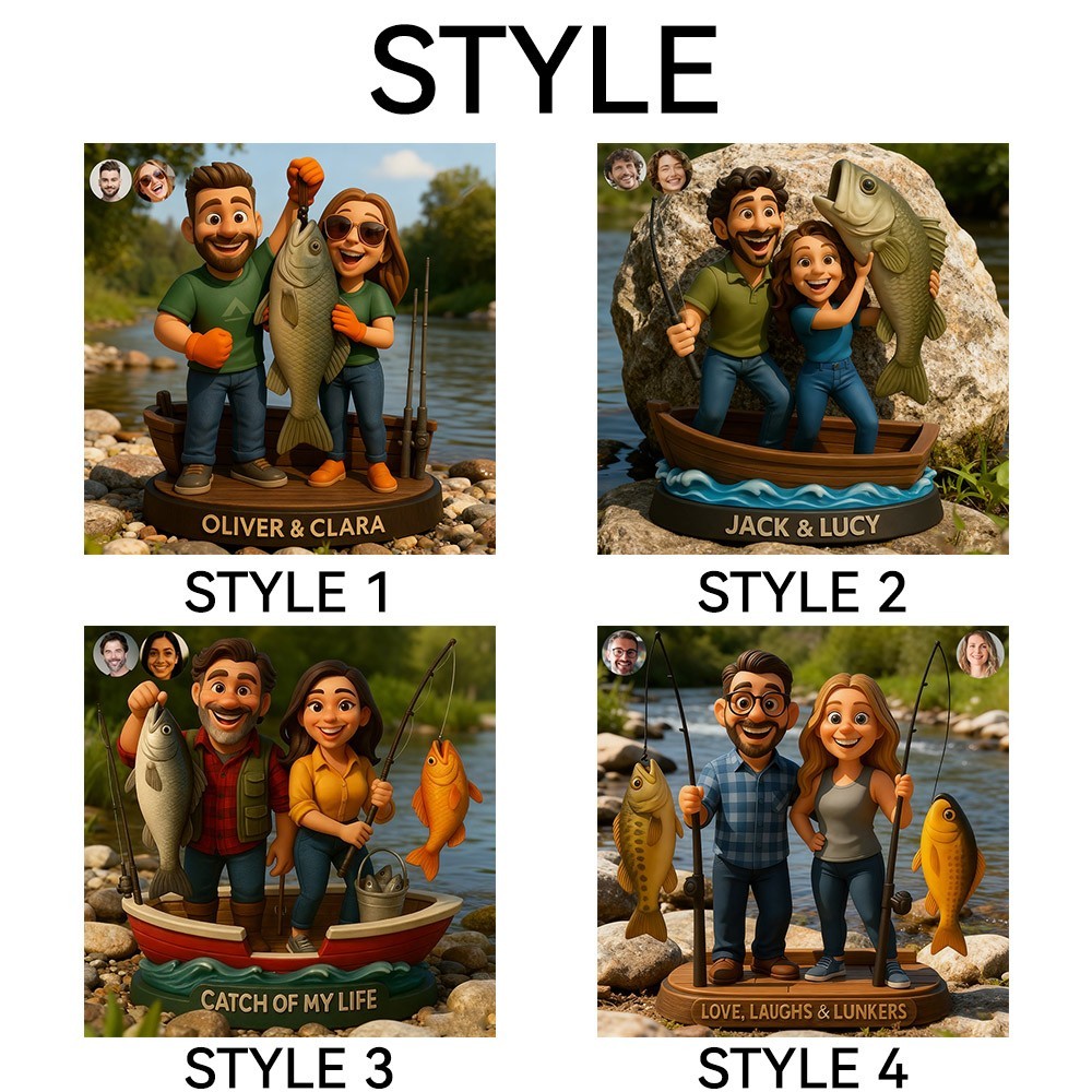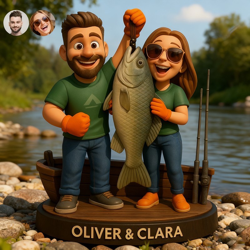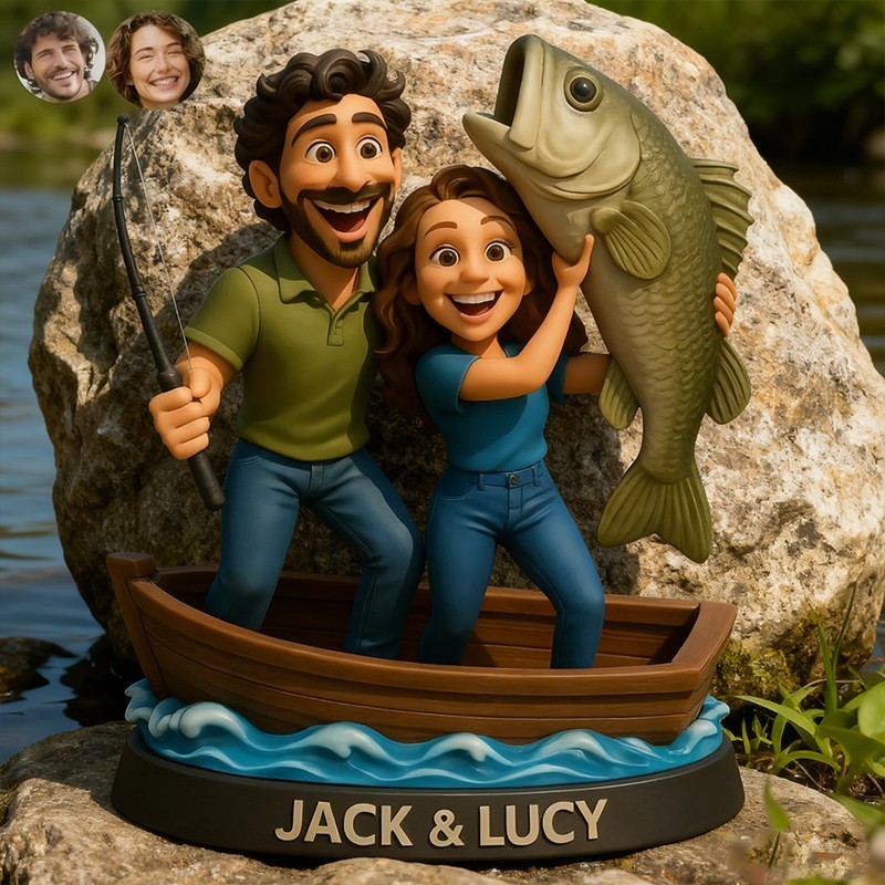 Custom Couple Fishing Themed Portrait Desktop Figurine Gifts for Couples Anniversary Gift Christmas Gift