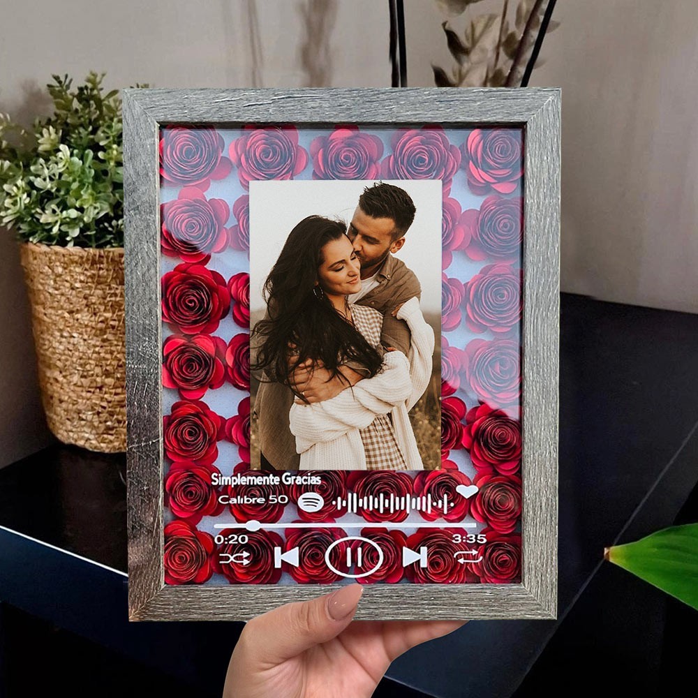 Custom Couple Flower Shadow Box with Spotify Code Unique Gifts for Her Anniversary Gift for Wife Valentine's Day Gifts
