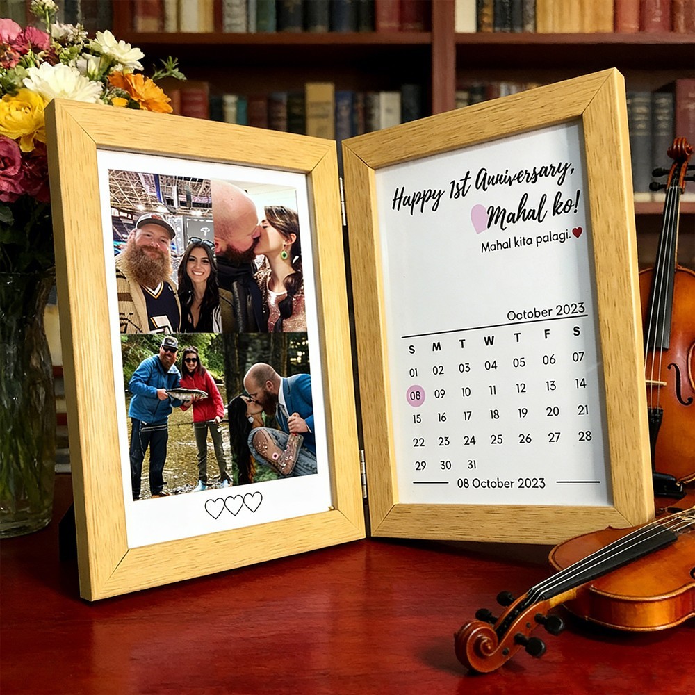 Custom Couple Photo Folding Photo Frame with Calendar Unique Anniversary Gifts Valentine's Day Gift for Couples