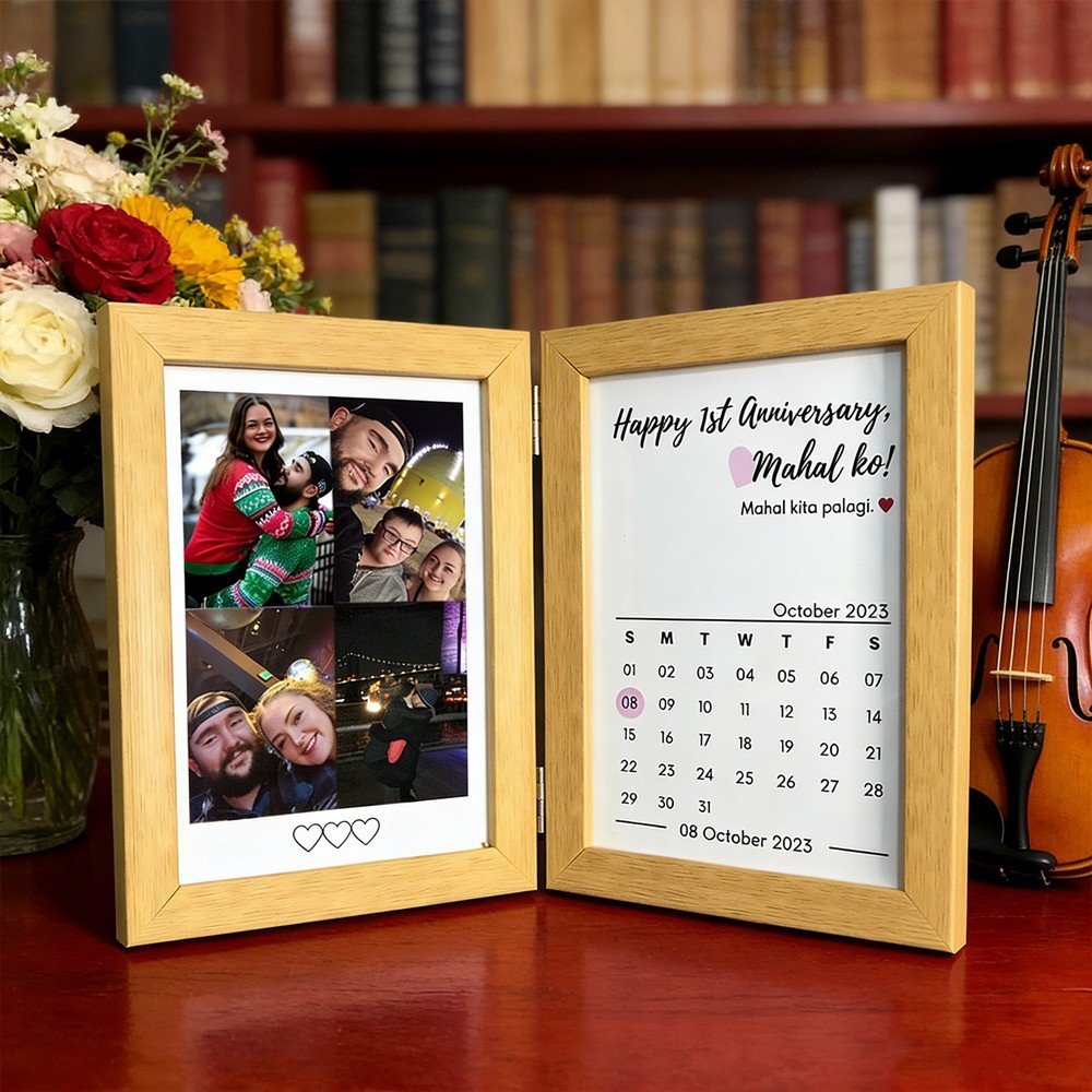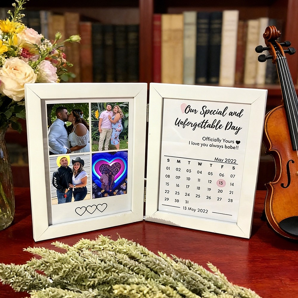 Custom Couple Photo Folding Photo Frame with Calendar Unique Anniversary Gifts Valentine's Day Gift for Couples