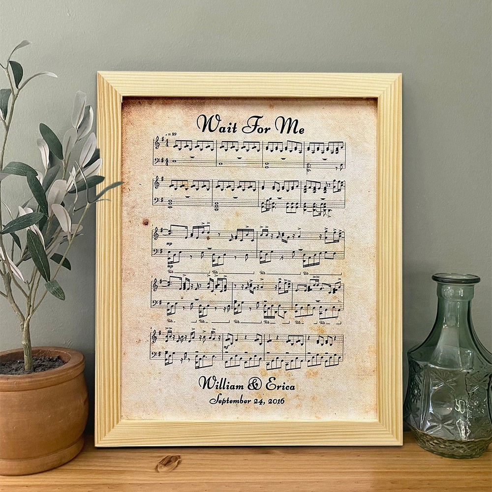 Custom Couples Wooden Sheet Music Frame Song Notes on Cotton Sheet Unique Gifts for Him 2nd Wedding Anniversary