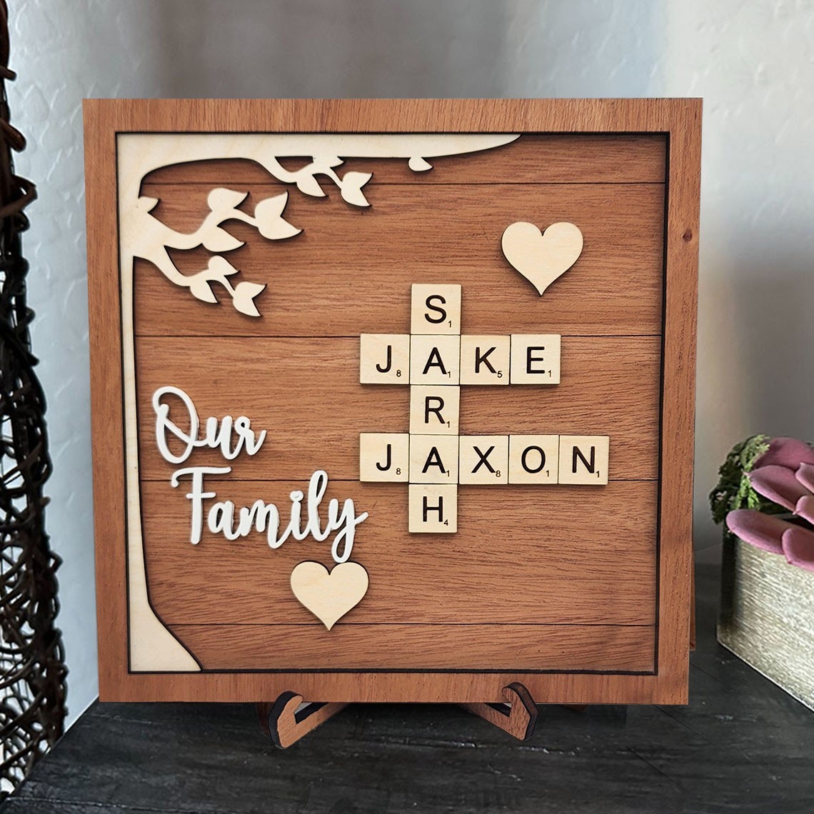 Custom Crossword Scrabble Family Wood Puzzle Plaque Sign with Kids Names for Mum Unique Family Keepsake Gifts Mother's Day Gift