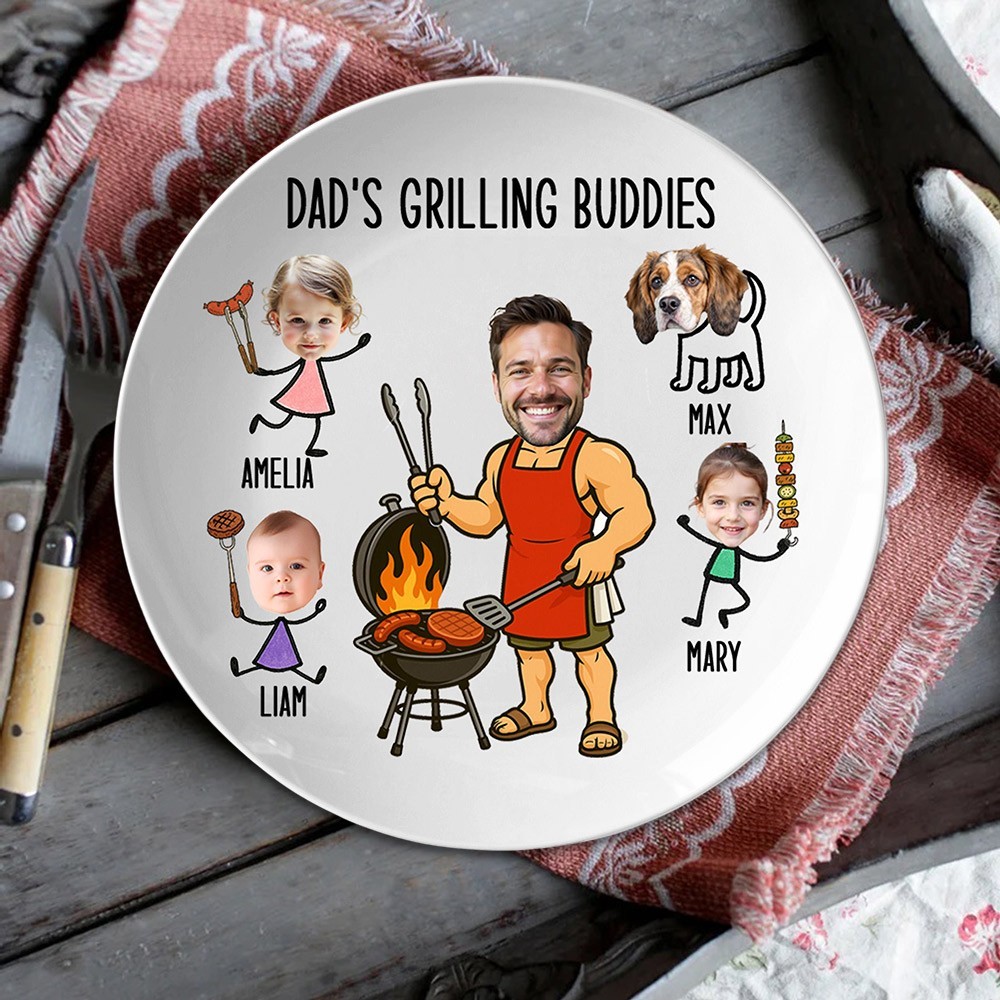 Custom Dad's Grilling BBQ Plate with Photo and Kids Name Unique Gifts for Dad Father's Day Gift