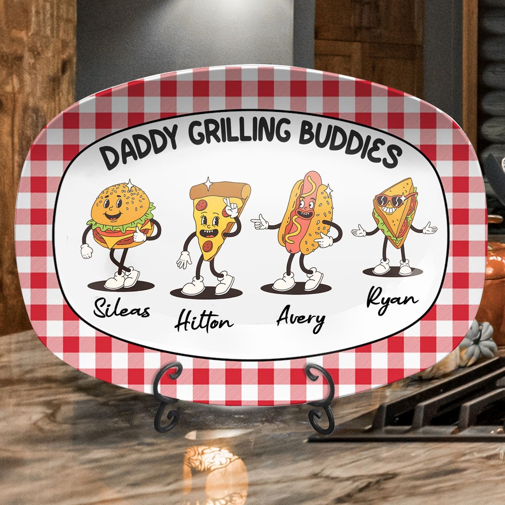 Custom Daddy's Grilling Buddies Personalised Plate With Kids Names Father's Day Gift Ideas