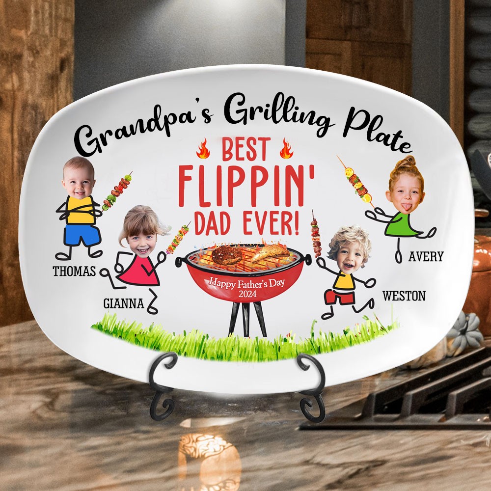 Custom Daddy's Grilling Plate with Photo and Kids Name Best Dad Ever Platter Father's Day Gifts
