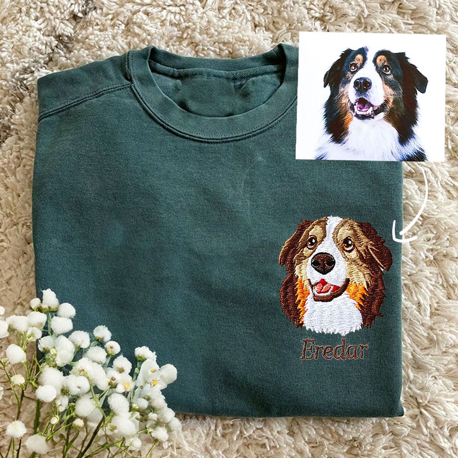 Custom Dog Face Photo Embroidered Sweatshirt Hoodie With Pet Name Pet Lovers Gift Ideas Keepsake Gifts for Her