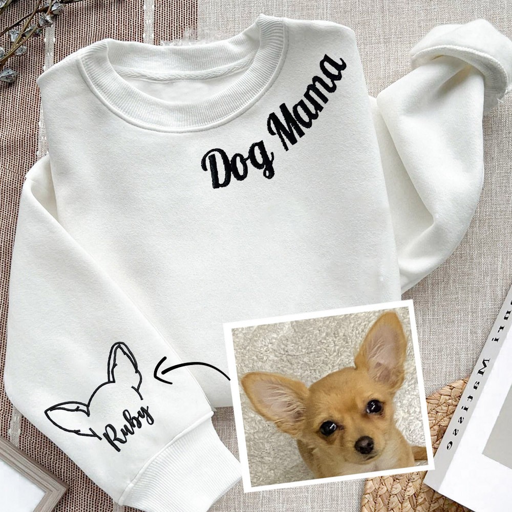Custom Dog Mum Sweatshirt Hoodie With Embroidered Dog Ears and Name On Sleeve Perfect Gift For Pet Lover