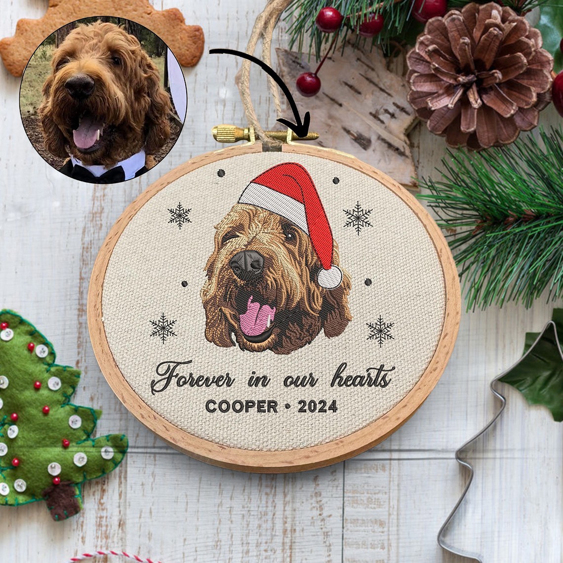 Custom Embroidered Dog Portrait Photo Ornament Gifts for Dog Owners Pet Memorial Gift Christmas Gift for Pet Lovers