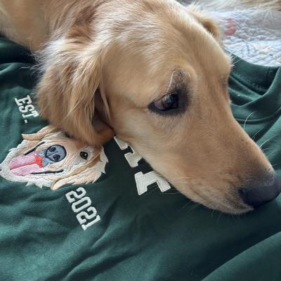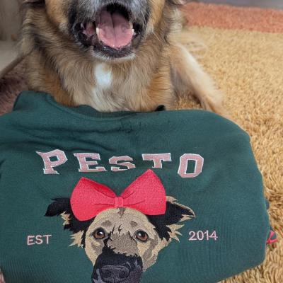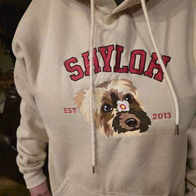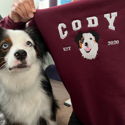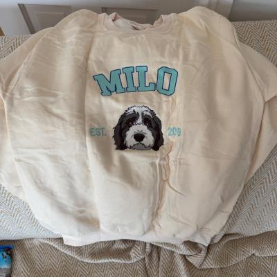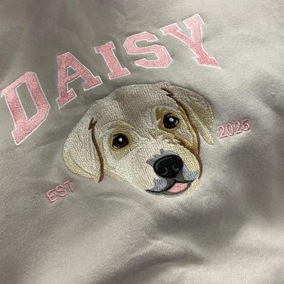 Custom Embroidered Pet Dog Portrait Photo Sweatshirt Hoodie Keepsake Gift for Pet Lovers