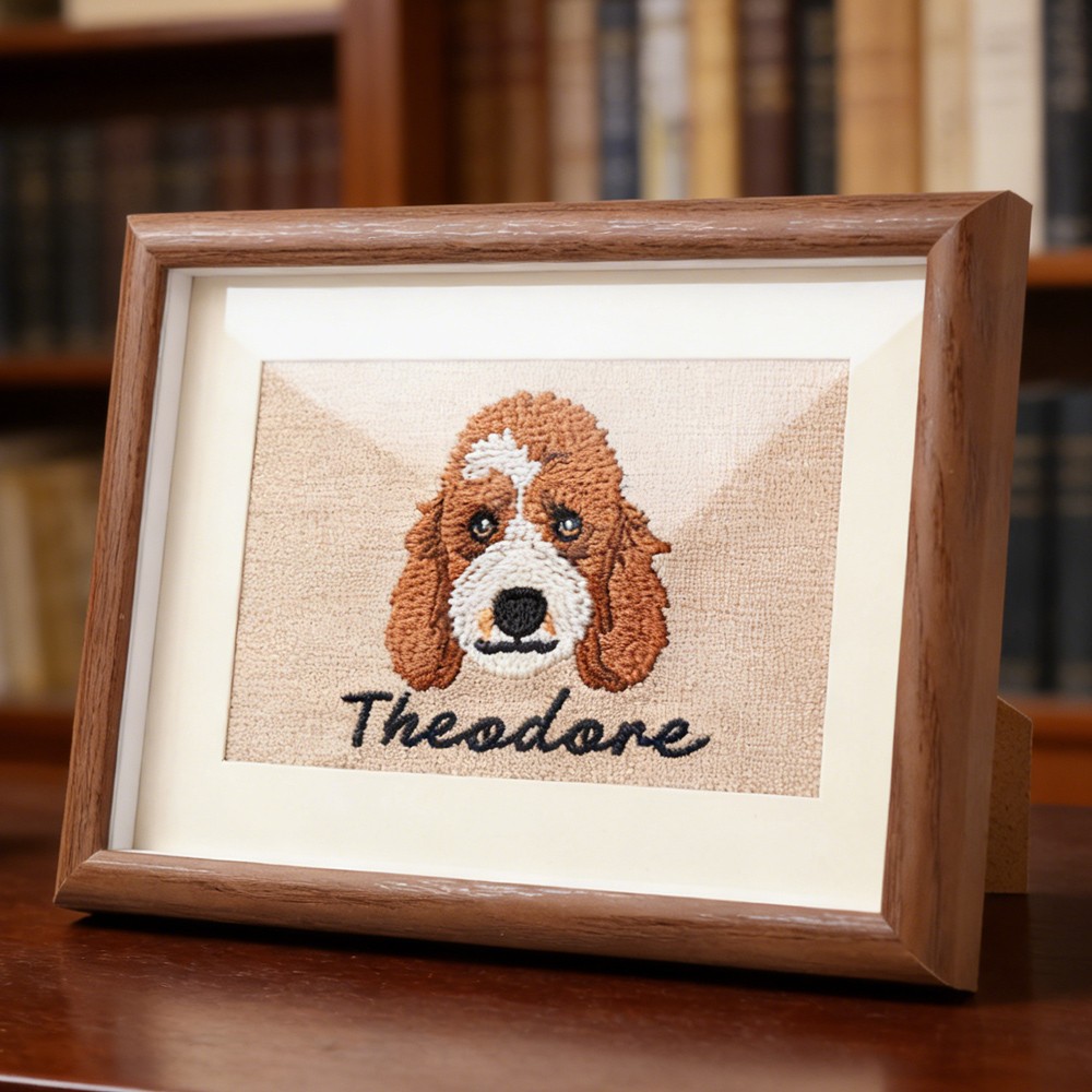 Custom Embroidered Pet Portrait Frame Personalised Dog or Cat Keepsake Gift Unique Memorial Gift For Pet Lovers