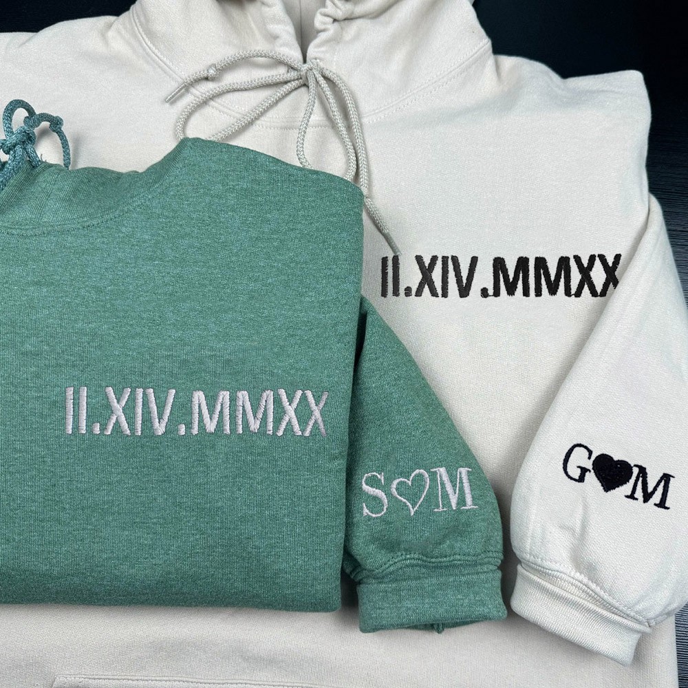 Custom Embroidered Roman Numeral Sweatshirt Hoodie Couple Gift Ideas Anniversary Gifts