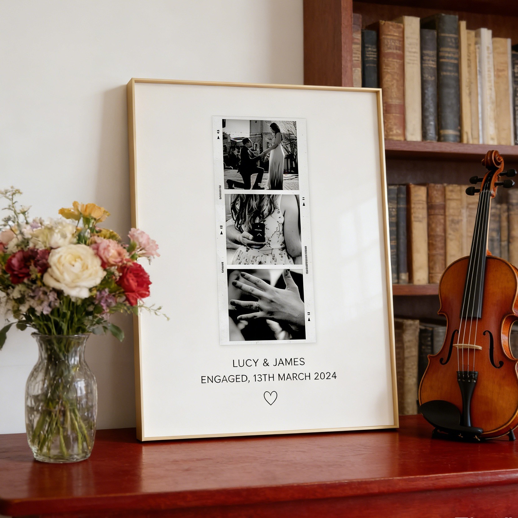 Custom Engagement Photo Print Frame for Couples Unique Engagement Gifts Wedding Gift Valentine's Day Gift