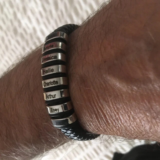 Custom Engraved Names Beads Men Braided Leather Bracelet Father's Day Gift Ideas