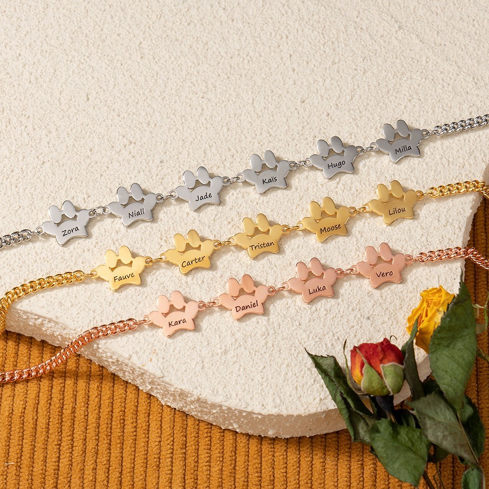 Custom Engraved Paw Print Name Bracelet Keepsake Gifts for Dog Owners Unique Pet Lover Gift Birthday Gift for Her