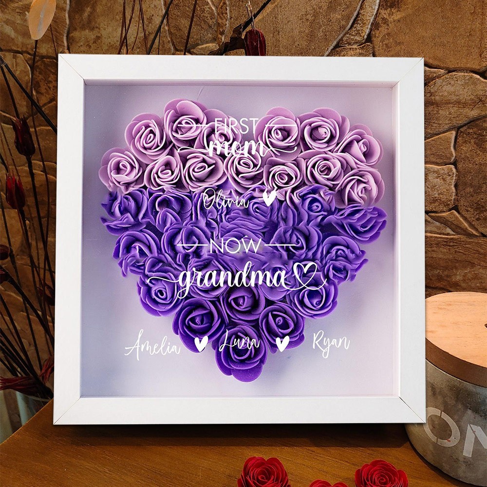 Custom First Mum Now Grandma Flower Shadow Box with Kids Names Gift Ideas for Mum Grandma Mother's Day Gift