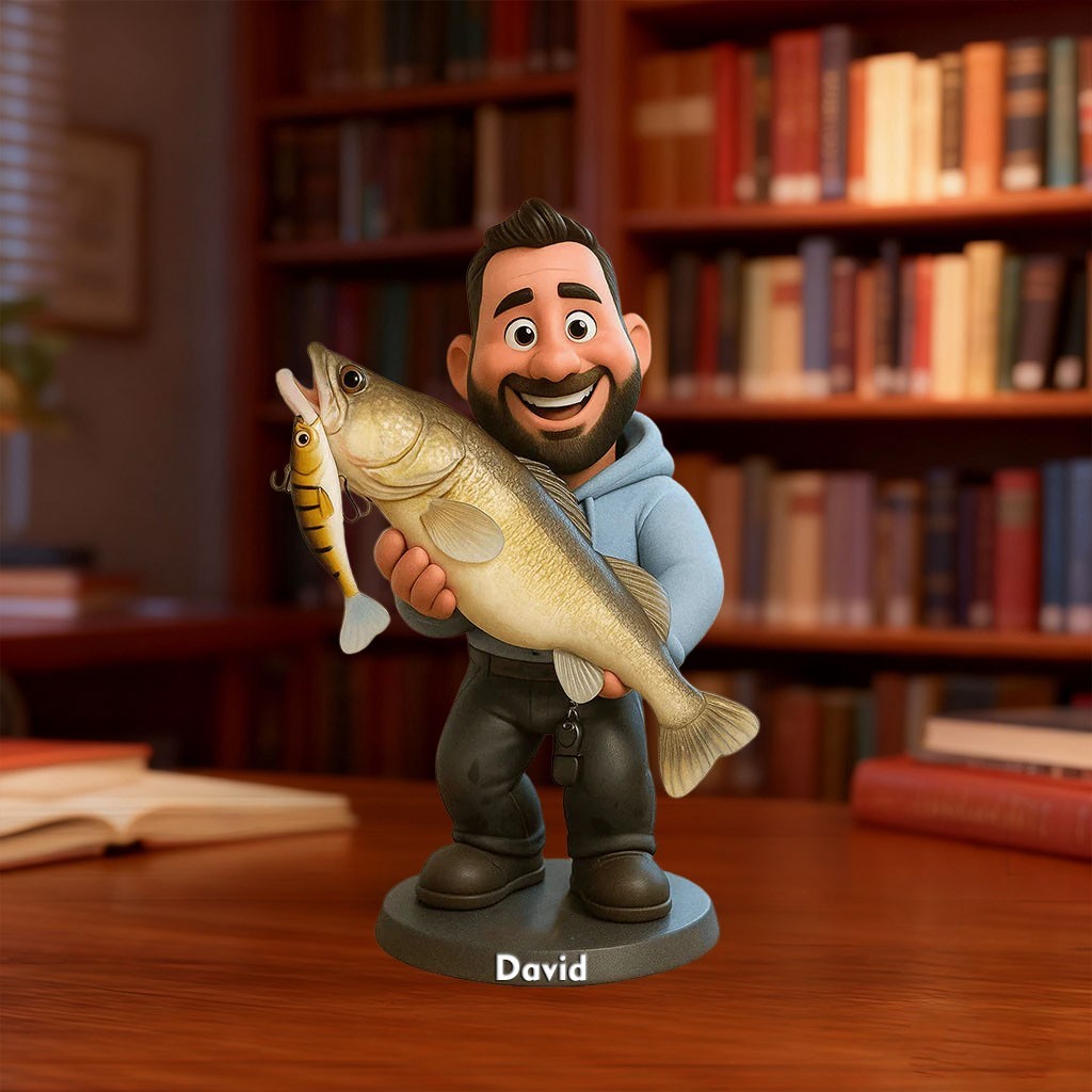 Custom Fishing Photo Portrait Cartoon Style Figurine for Him Unique Desk Decor Gifts for Fisherman Christmas Gift
