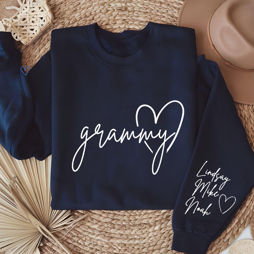 Custom Grammy Embroidered Sweatshirt with kids Names on Sleeve New Mum Gift Unique Gifts for Grammy Mother's Day Gift
