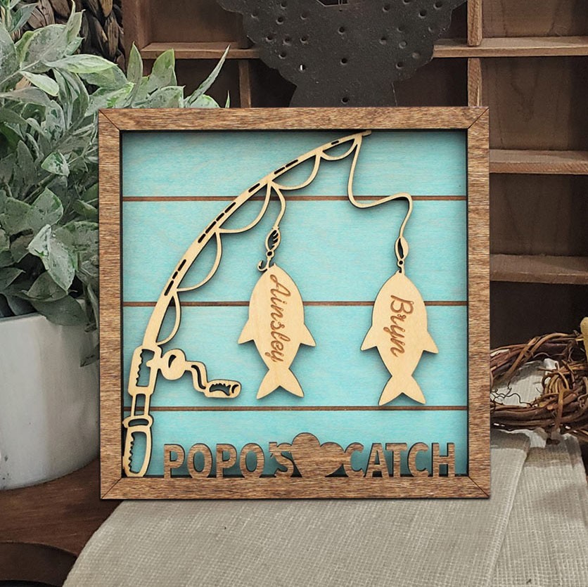 Custom Granddaddy's Catch Fishing Wood Frame Sign With Grandkids Names Unique Father's Day Gift