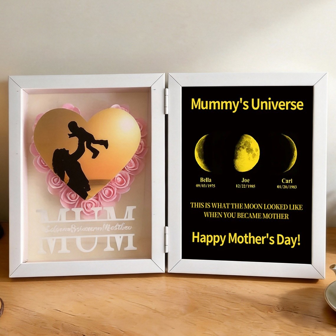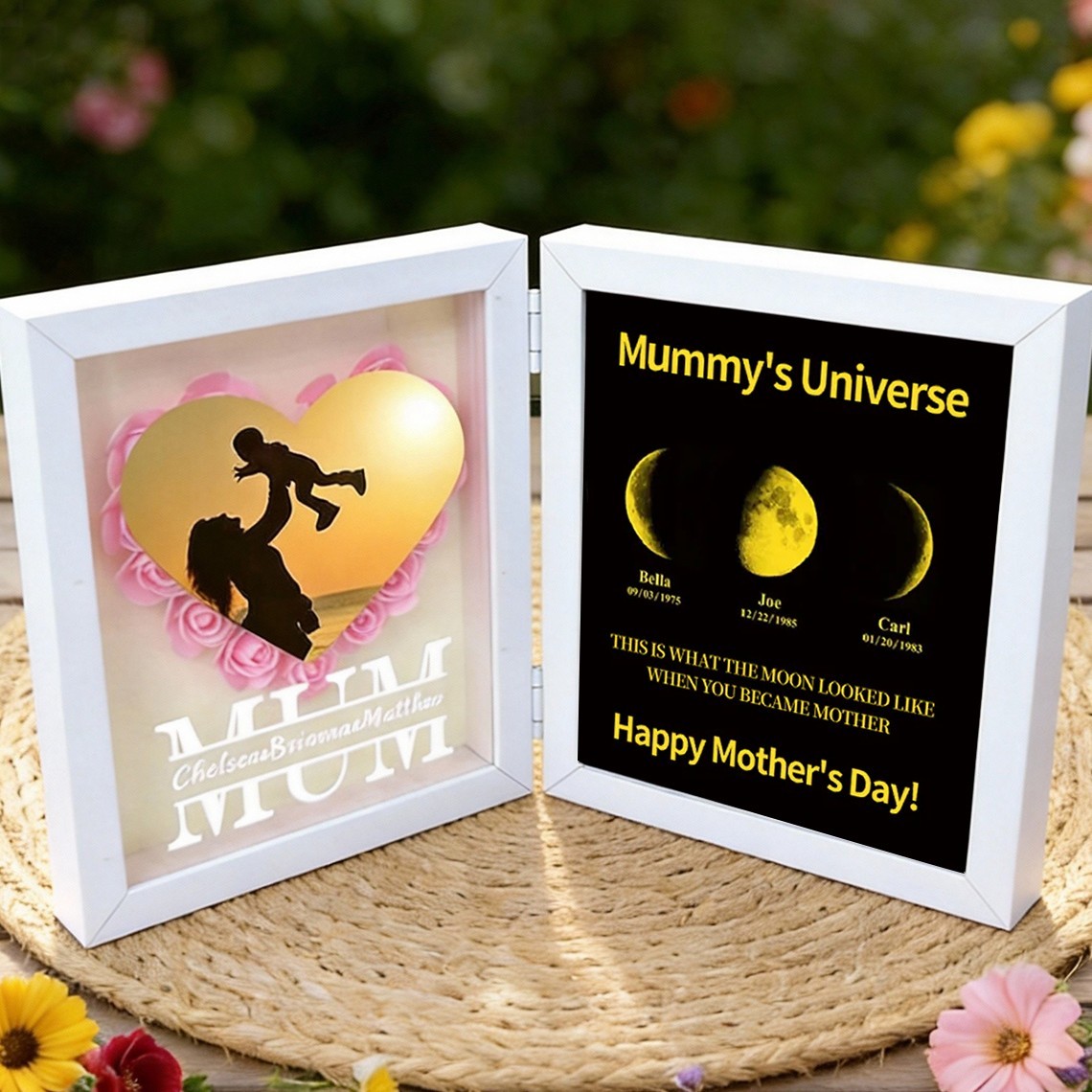 Custom Grandma Flower Shadow Box with Moon Phase Print Frame Keepsake Gifts for Grandma Mum Mother's Day Gift