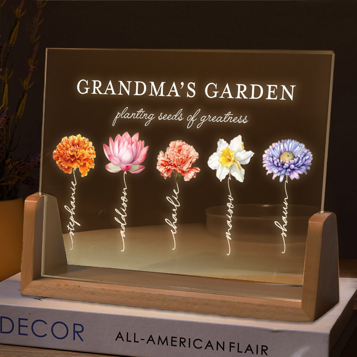 Custom Grandma's Garden Birth Month Flower Night Light with Kids Names Keepsake Gifts for Grandma Mum Mother's Day Gift