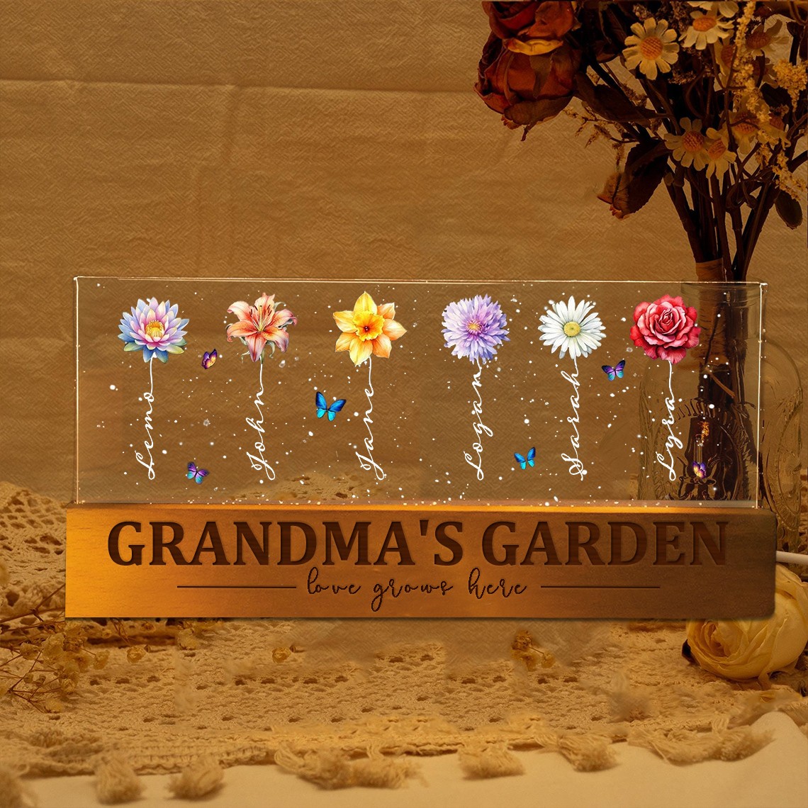 Custom Grandma's Garden Birth Month Flower Wood Night Light with Kids Names Gifts for Mum Grandma Mother's Day Gift
