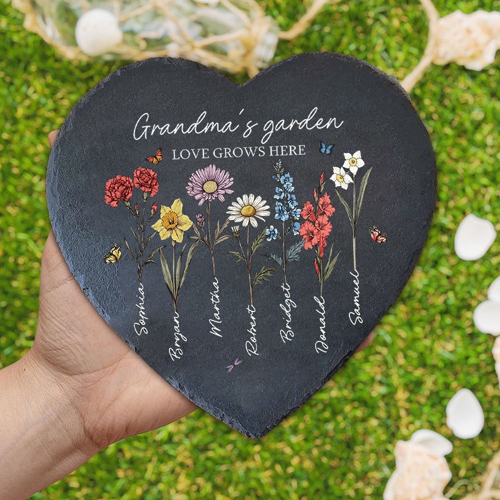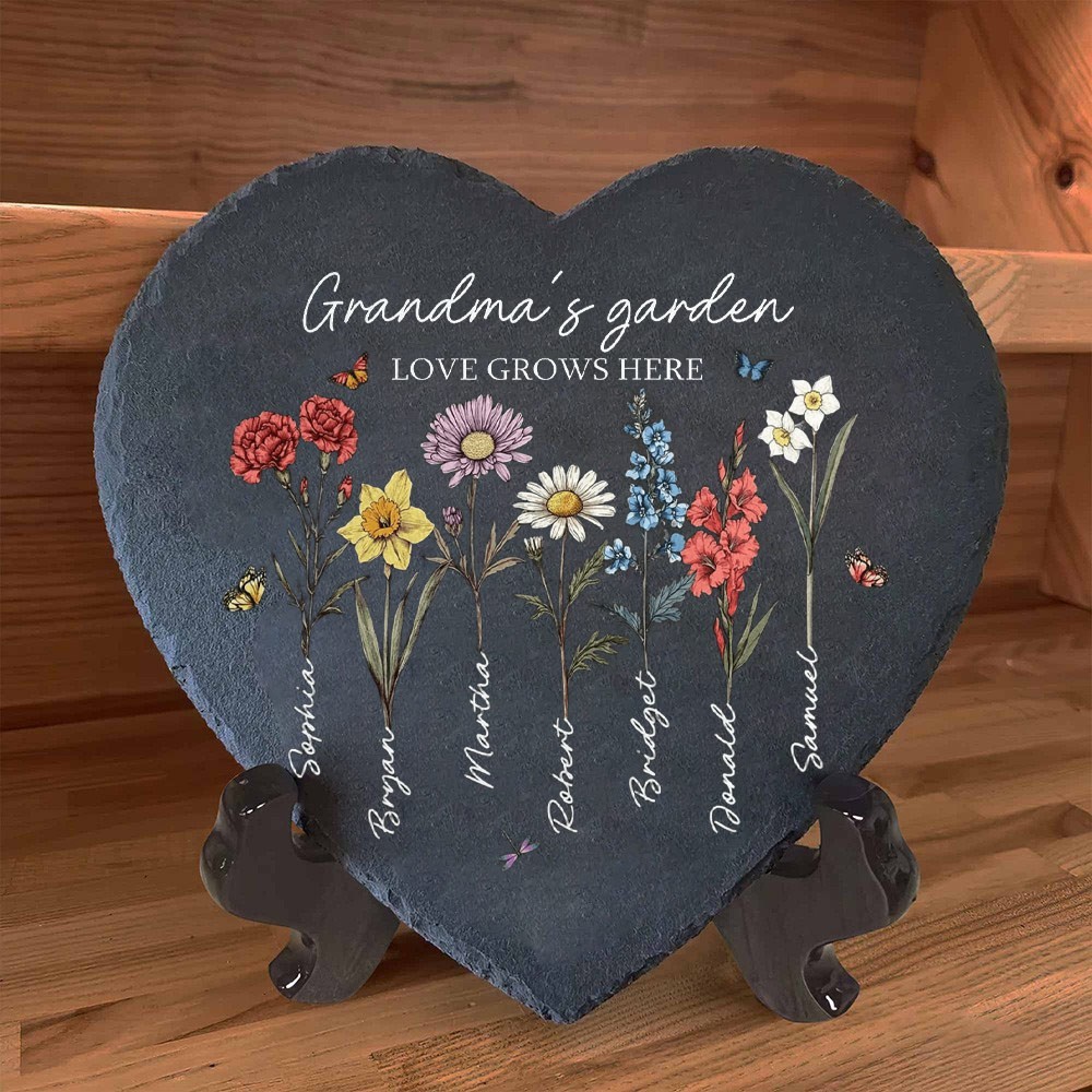 Custom Grandma's Garden Heart Shaped Birth Flower Plaque with Kids Names Keepsake Gifts for Grandma Mum Mother's Day Gift