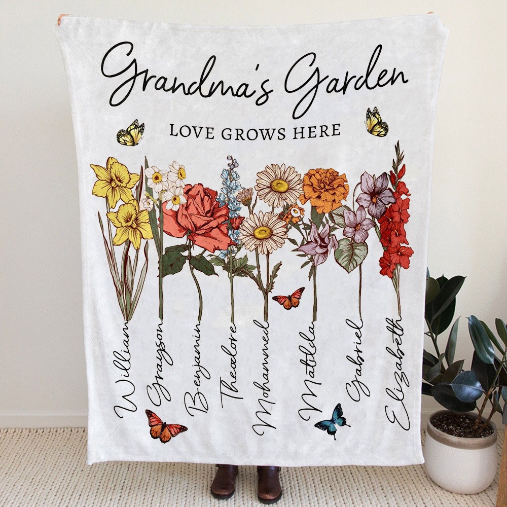 Custom Grandma's Garden Love Grows Here Birth Flower Blanket Gift For Mum Grandma Christmas Gift Ideas