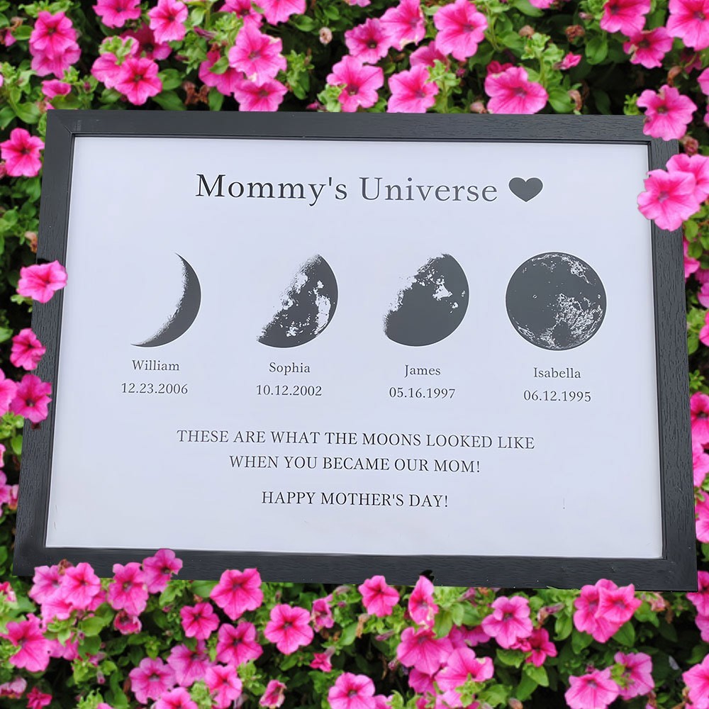 Custom Grandma's Night Sky Moon Phase Print Frame with Grandkids Names Gifts for Grandma Mum Unique Mother's Day Gift