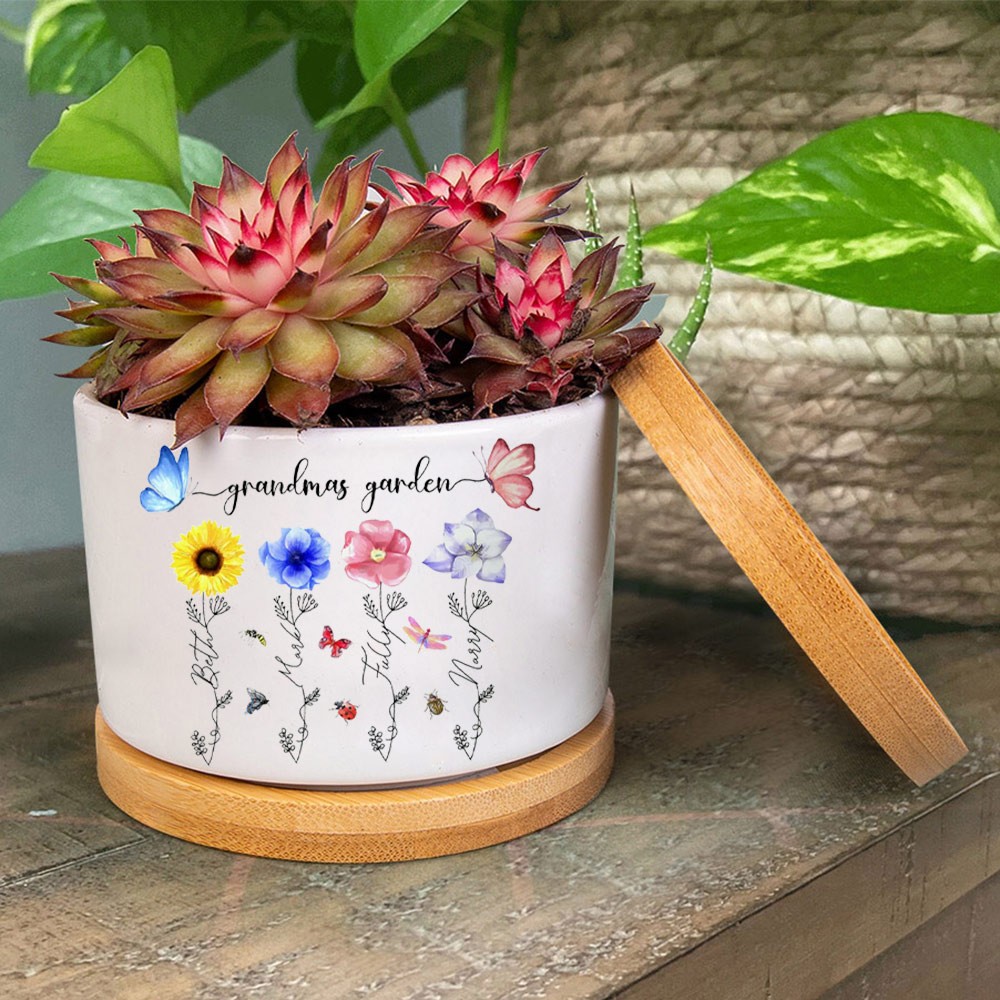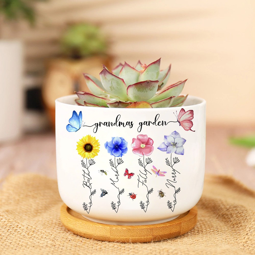 Custom Grandmas Garden Colorful Birth Flower Pot with Grandkids Names Unique Gifts for Mum Grandma Mother's Day Gift Ideas