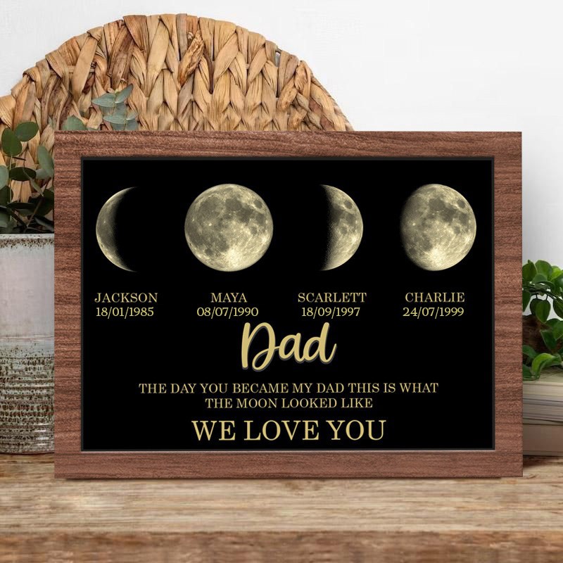 Custom Grandpa Moon Phase Print Wood Frame Sign Meaningful Gift Ideas Father's Day Gift