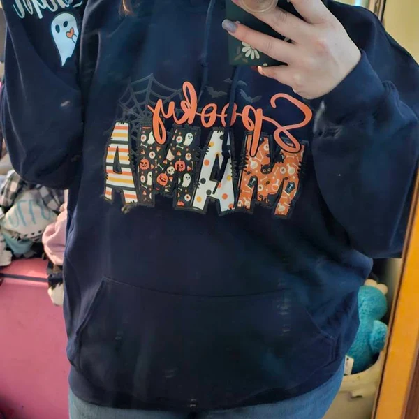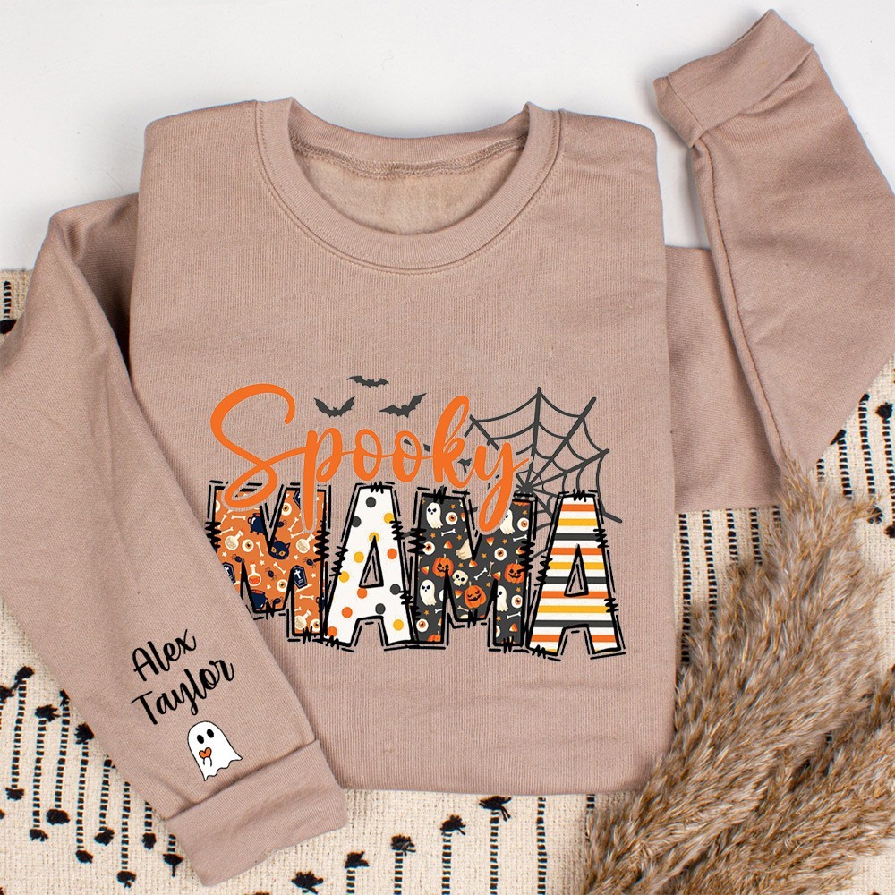 Custom Halloween Spooky Mama Sweatshirt with Kids Names on Sleeve Unique Gifts for Mum Halloween Gift