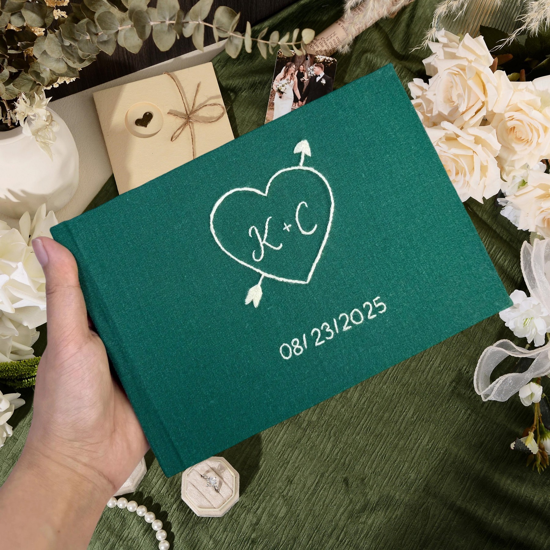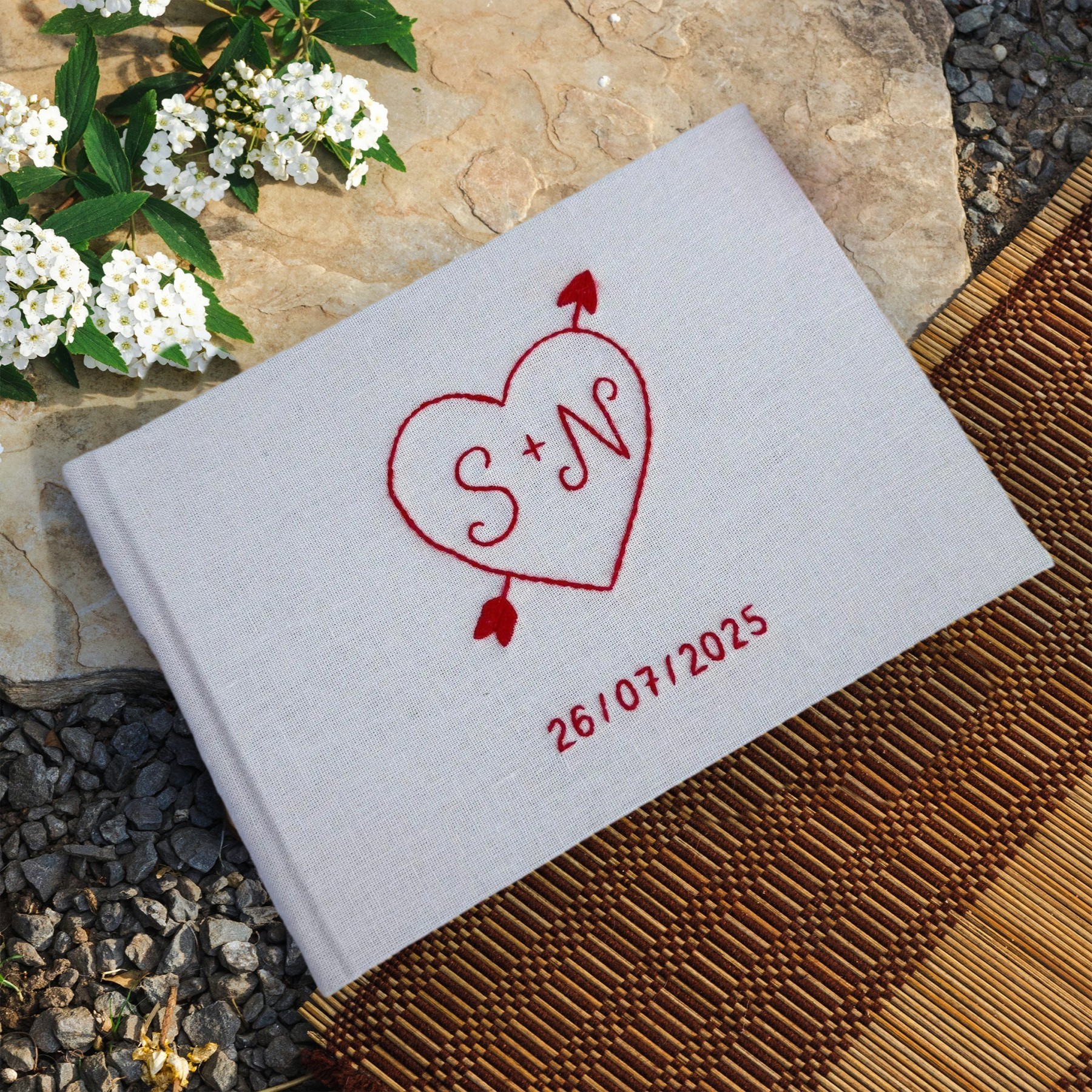 Custom Hand Embroidered Wedding Guest Book with Heart Arrow Design for Couples Unique Wedding Gifts