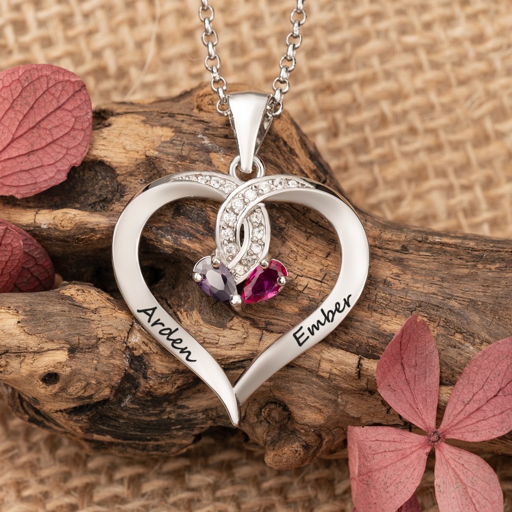 Custom Heart 2 Names Necklace with Birthstones Designs Unique Gifts for Wife Anniversary Gift Ideas