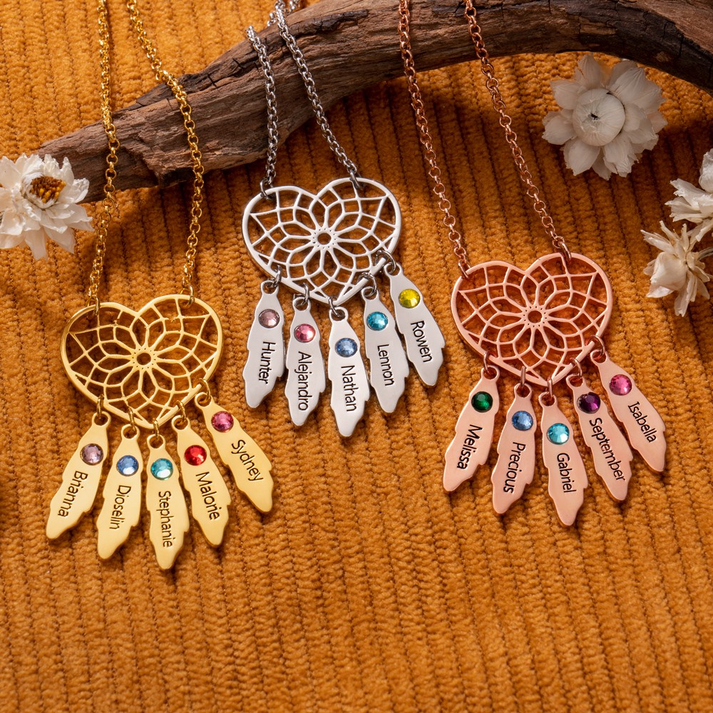 Custom Heart Flower Shaped Birthstones Necklace With Kids Names Personalised Keepsake Gifts For Mum Grandma
