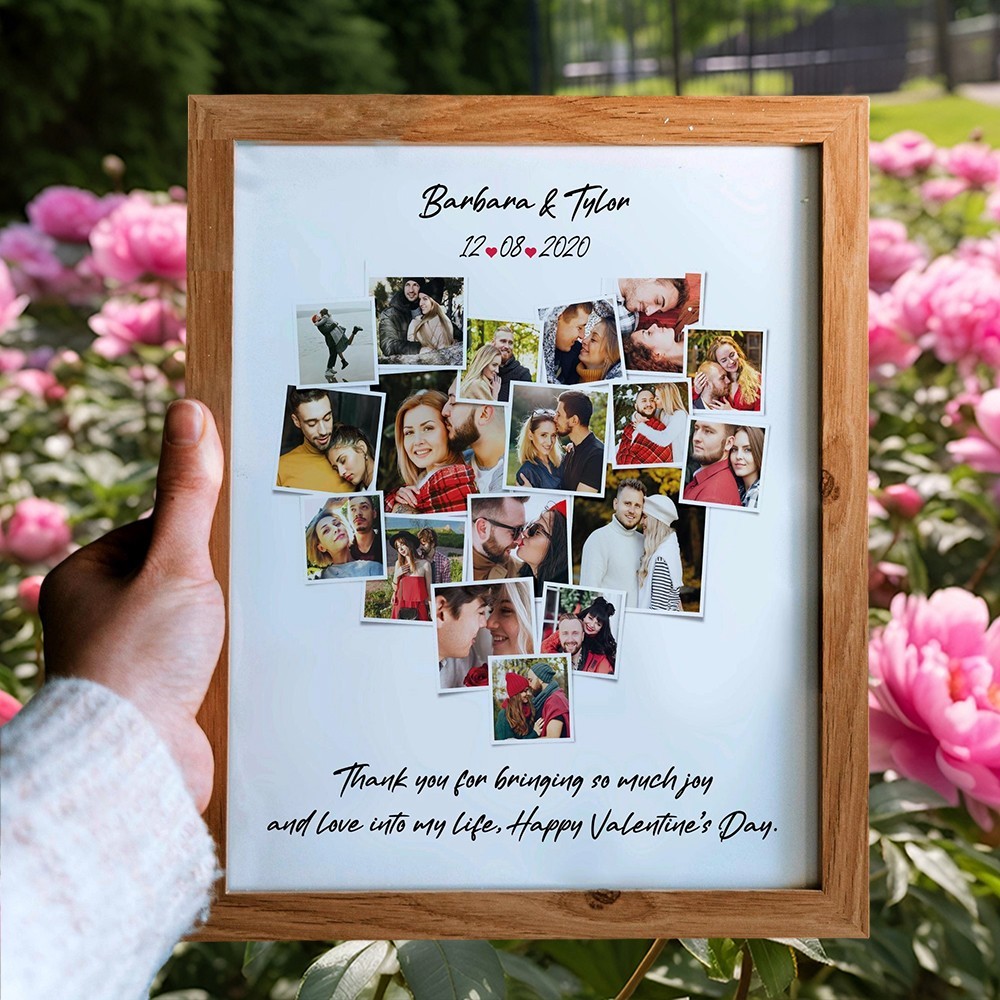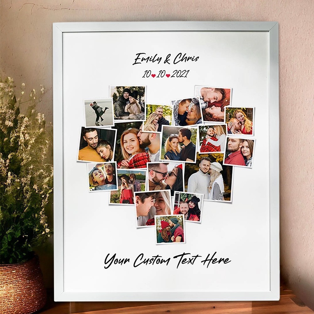 Custom Heart Shape Photo Collage Print Frame Gifts for Couples Anniversary Gift Unique Valentine's Day Gifts