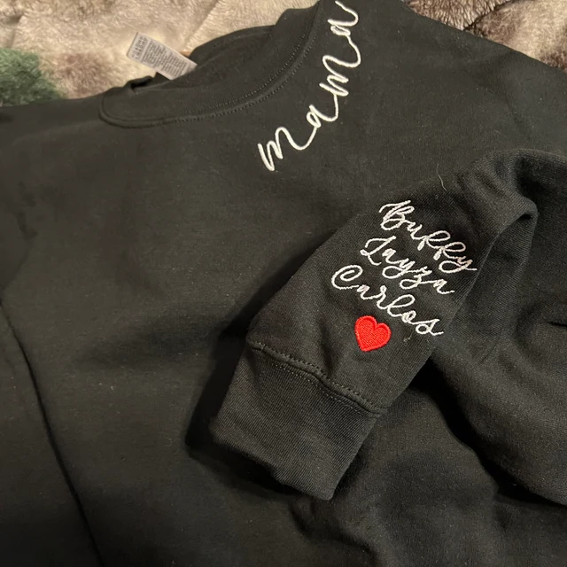 Custom Mama Embroidered Sweatshirt Hoodie with kids Names On Sleeve Mother's Day Gift