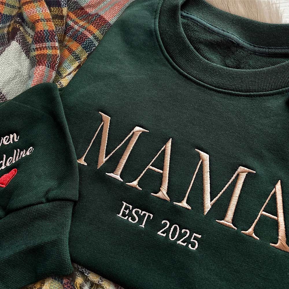 Custom Mama Embroidered Sweatshirt with Kids Names on Sleeve New Mum Gift Keepsake Gifts for Mum Mother's Day Gift